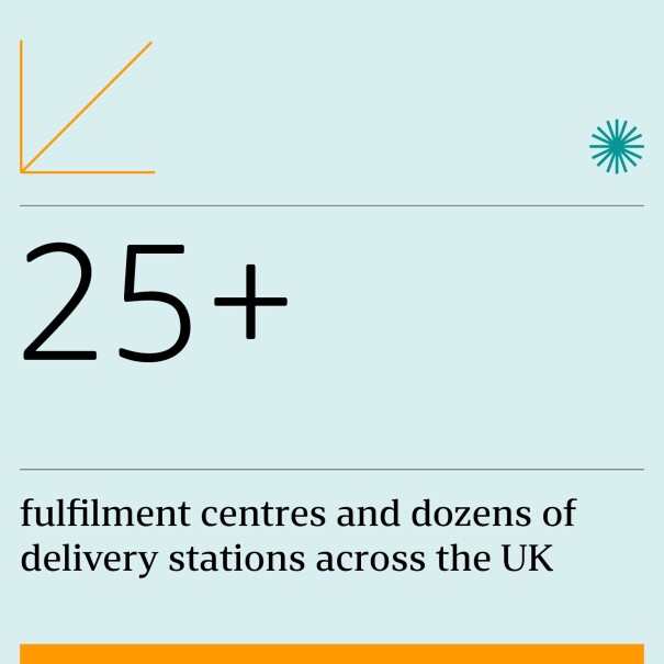We have invested in the UK to build the digital and physical infrastructure to deliver products and services to millions of customers. Our staff work at sites across the length and breadth of the country, including our Head Office in London, our corporate office in Manchester, R&D centres in Cambridge, Edinburgh, Swansea and London, and our state-of-the-art 30+ fulfilment centres, sort centres, and delivery stations across the UK.