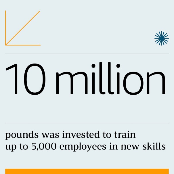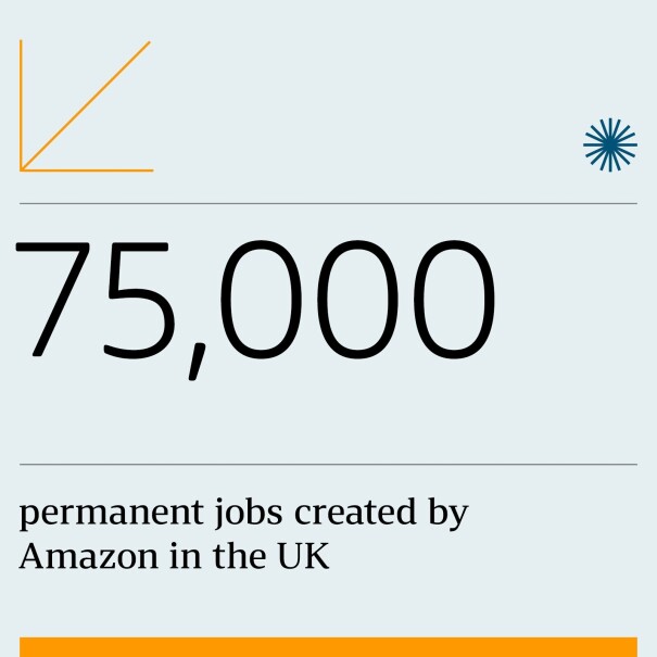 Amazon’s total permanent workforce of around 75,000 employees makes us one of the top 10 private sector employers in the UK. Our employees are spread across the UK in a variety of corporate and technology functions in Amazon and Amazon Web Services (AWS), including software development, product management, and engineering, as well as jobs in the operations teams in our fulfilment centres, sort centres, and delivery stations. We recently made a further £3.5 million commitment to our apprenticeship fund to create career opportunities for people across England, bringing the total investment pledged to £12 million since 2020. In the last 10 years (since 2014), we’ve made direct investments in our UK operations of more than £75 billion. These direct investments raise the economic activity in a given region and create a ripple effect through the economy as the firms that supply goods and services to Amazon expand, and associated household spending increases. In 2024, we invested more than £1.6 billion in infrastructure as we continued to fit out our fulfilment centres with the latest robotics technology, including a £450 million state-of-the-art fulfilment centre in Stockton-on-Tees, County Durham which opened its doors in October 2023.