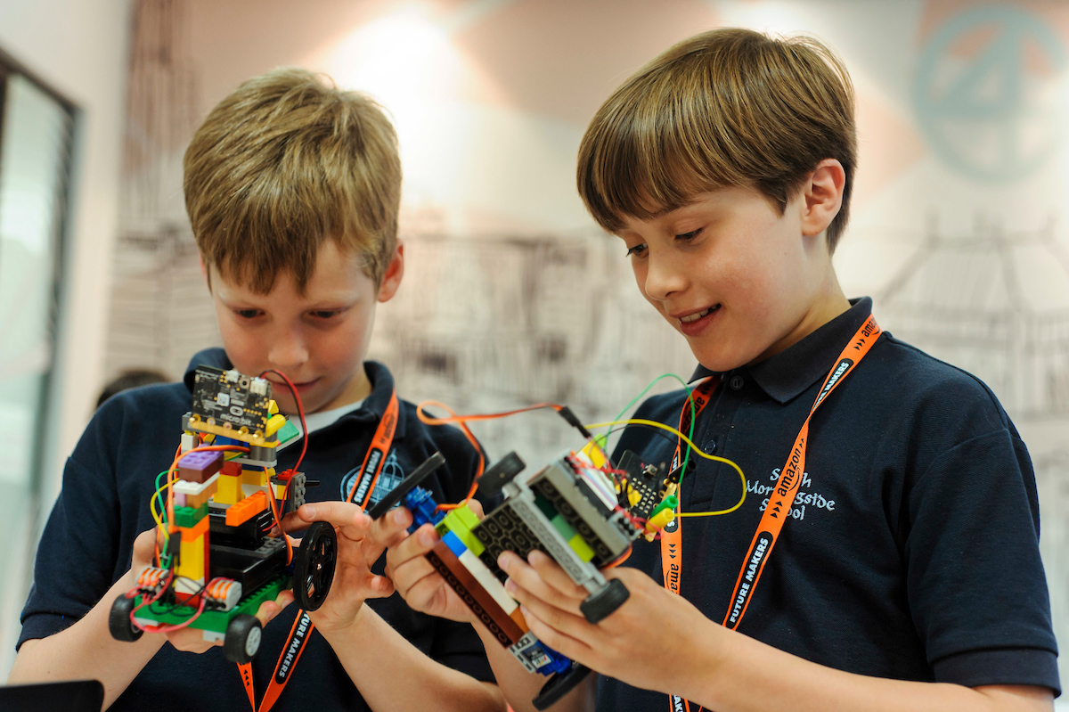 Children were asked to design a robot that could solve a problem in the real world, using a combination of toy building blocks and electronics components. Amazon engineers worked with the children to write code to program the robots to move around and fulfil their functions.