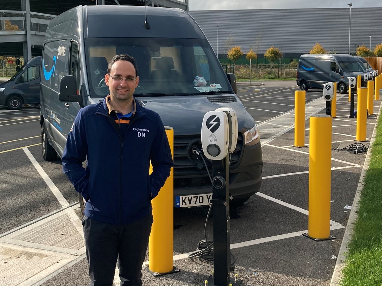 The work Doros does each day is crucial to Amazon’s electrification programmes and overall sustainability targets. As well as retrofitting existing facilities with charging technology, all new delivery stations are designed with the physical layout and electrical capacity to meet the needs of our current and future electric delivery fleets.